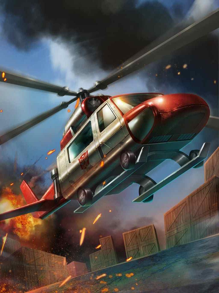 Basically a street fighter - prefers using rotor blades for slashing Decepticons rather than for flying. Considers long-range air attacks unsporting, cowardly. Maximum speed: 400 mph; range: 1200 miles. Twin launchers fire "smart" rockets that seek targets based on encoded computer images. Uses photon pistol. Combines with fellow Protectobots to form "[Defensor]"