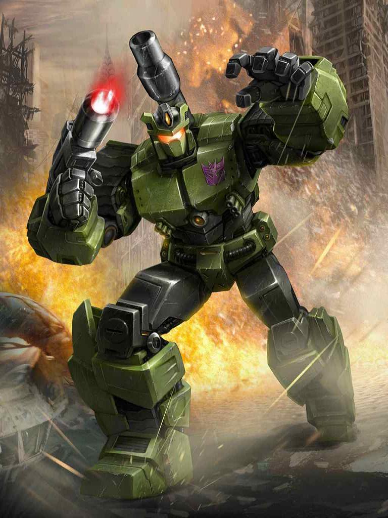 Noisy, irritates all nearby. Hair-trigger temper, blusteringly belligerent... a terrifyingly effective warrior. Enormously strong. resistant to most conventional artillery. As tank, goes 45 mph, range 600 miles. Turret-mounted gun shoots 200 lbs. TNT-equivalent shells, twin sonic cannon shoots powerful, ear-splitting 300-decibel bursts of concentrated sound energy in stereo. In robot mode, has 10-Megawatt electron gun. Combines with fellow Combaticons to form "[Bruticus]".