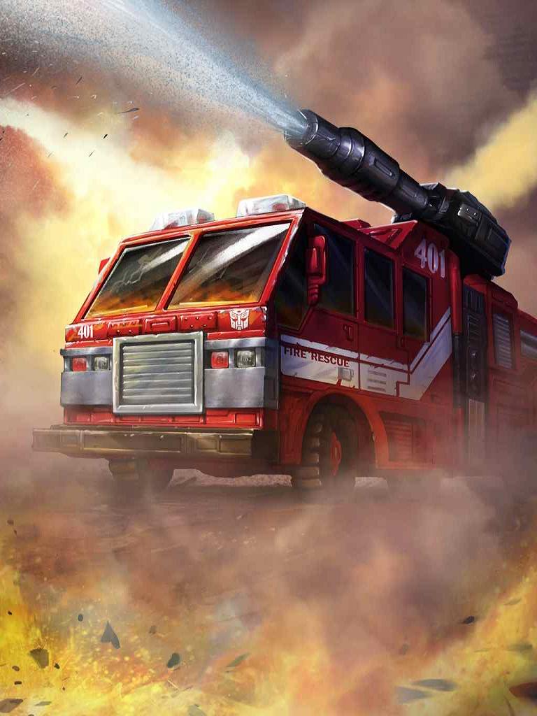 "The hotter things get, the better I like it"... not only fires, but battle too. Often distracted from performing his job to engage in combat. Can do anything Earth fire trucks can in vehicular mode. Great strength... ceramic plated armoured skin can take up to 8000°c. Extinguisher rifle shoots flame suppressing foam and an energy damping beam to counter other beams. Forearms shoot missiles. Doesn't follow orders well, not very mobile as robot.