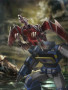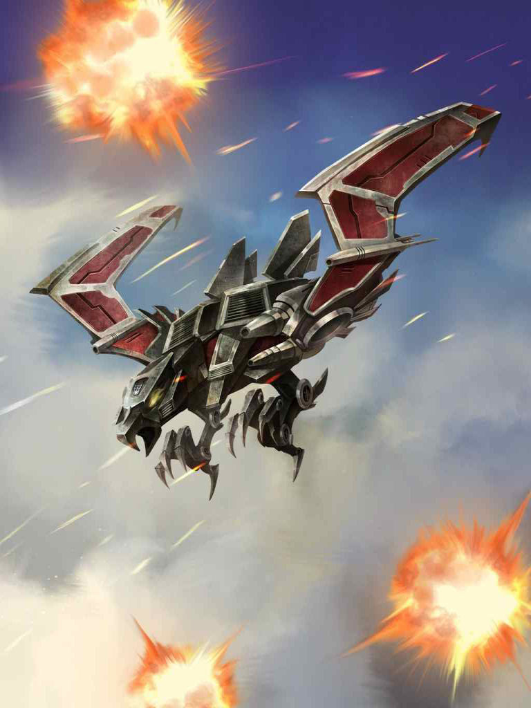 Laserbeak takes pleasure in hunting his prey - usually the straggling survivors of a battle. Noticeably not brave. Will run for safety if threatened. Flies at speeds up to 250 mph. Uses two independently targetable laser cannons with extreme precision to get information from captives. Shortage of ruby crystals that powers the lasers can panic his systems into shutting down.