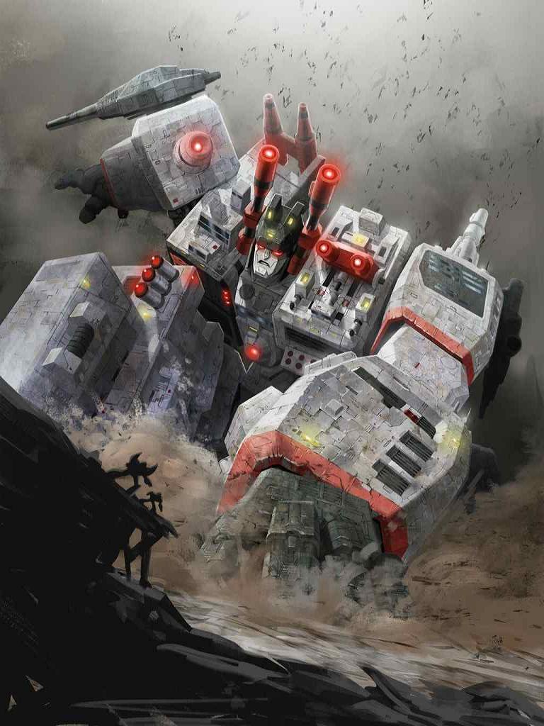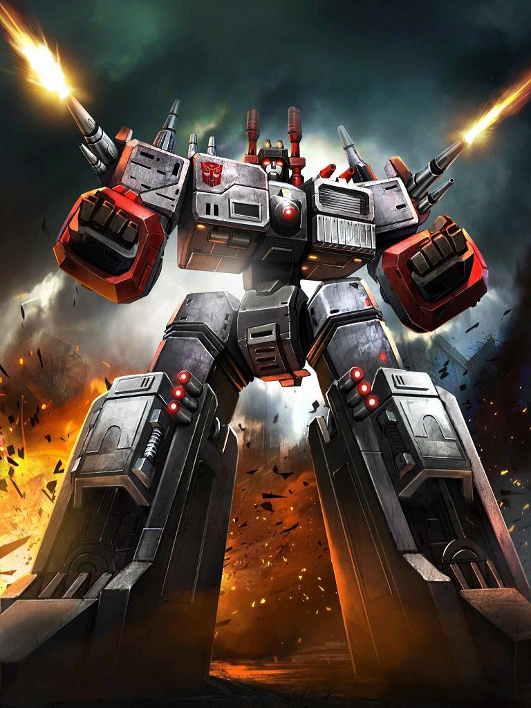 Startlingly versatile, staggeringly strong, the Autobot's last line of defense... a mighty instrument of titanic destructive force. Extremely modest about his achievements... berates himself for not doing more. In robot mode, he can lift 70,000 tons, has shoulder-mounted twin high-energy master cannons and omni-directional receiving and transmitting antenna. In city mode, has helipad and fully equipped repair bays that can handle four vehicles at once. Left rear tower transforms into tank, Slammer, who has rocket-propelled mortar cannon. Scamper is a sports car with side-mounted electro-blasters; transforms into robot, uses high-energy particle beam pistol. Six-Gun is a small robot, has ion-pulse rifles for arms, twin surface to-to-air guided missile launchers on back, acetylene pistol. In battle station mode, uses all these weapons and twin disruptor rays, laser lancers and powerful anti-matter projectors.