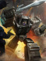 No one on the road is colder and crueler. Shows no mercy to Autobots who happen to be on the highway with him. Seeks to destroy Optimus Prime so he can claim to be "king of the road". Can survive a collision with anyone, except Optimus Prime. Reaches a top speed of 140 mph and can shatter a 20-foot thick concrete block. Uses a 400 mph, wind producing cyclone gun. Forms robot Menasor with fellow Stunticons.