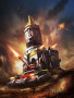The ultimate defense force! Great strength, even greater courage. Serious, even grim ...last line of Autobot defense. Protects the Ark and all else vital to his cause. As a robot, can shatter a mountainside, lift 300,000 tons with clawed arm, destroy 12" steel cube with plasma blaster arm. Has head-mounted laser cannon. Can transform to laser cannon tank and launching pad with rocket. Rocket can achieve planetary orbit.