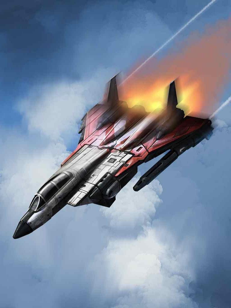 Mid-air collisions are his specialty. Makes little difference if target is opponent or not, he'll crash into it just for fun. A terror without equal in the skies. "The skies are my castle and I like to live alone". His nose module can withstand impact of three-foot thick concrete at 1500 mph. Flies as fast as mach 2.8. Carries cluster bombs. Too many crashes can injure him, particularly internal mechanics.