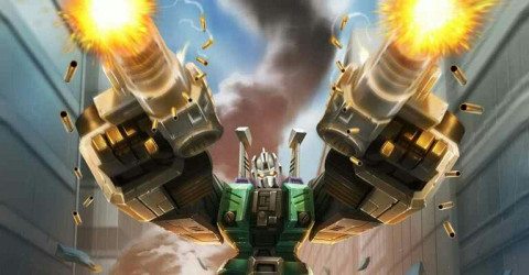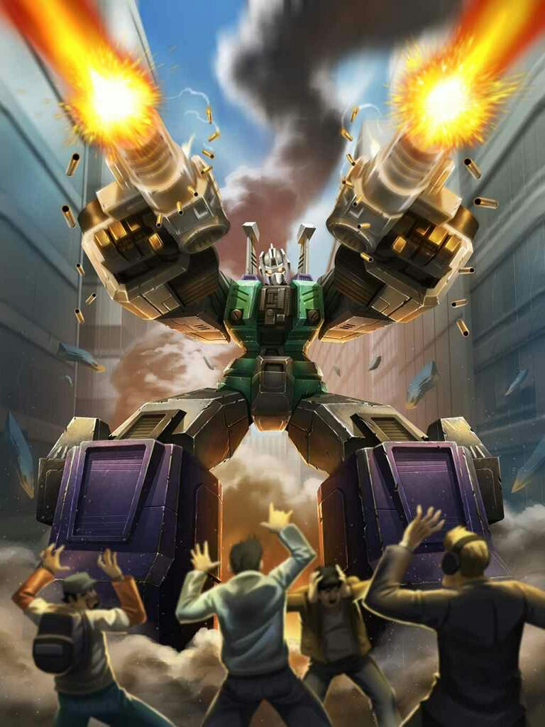A vile, nasty murderous sort who carries out his job with ferocious intensity. Only redeeming quality is he speaks well of those he's sent to "the great junkyard in the sky", his phrase for destruction. Has six forms: robot, armoured carrier (with twin laser batteries), ramming-tank (with infra-red rangefinder and target tracker), jet-propelled laser pistol, star fighter (maximum speed: 80,000 mph; range: .8 million miles) and a wolf-creature mode. Only the wolf-creature has no need for Sixshot's two hypersonic concussion blasters; the wolf mode prefers to rip apart enemy Autobots with his razor fangs.