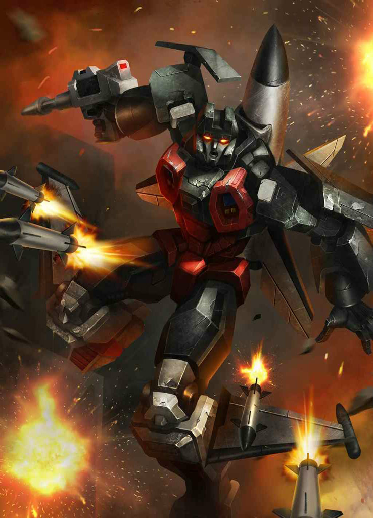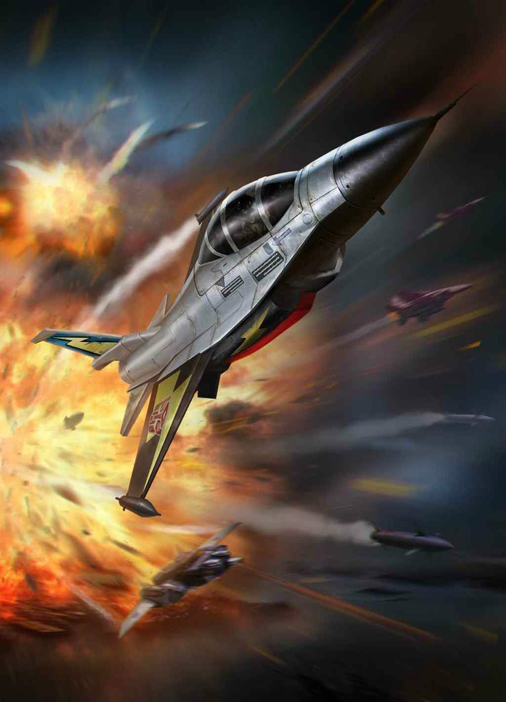 Would rather read about jet fighters than be one... fascinated by the science of aerial warfare. Can within the limits of his design, duplicate the flying motion of anything he sees... Maybe the most skilled flyer of all Transformers. Flies at Mach 2.6, range 1400 miles. Carries laser-guided missiles, uses nega-gun that crumbles objects by breaking molecular bonds. Prone to mid-air stalls. With fellow Aerialbots forms Superion.