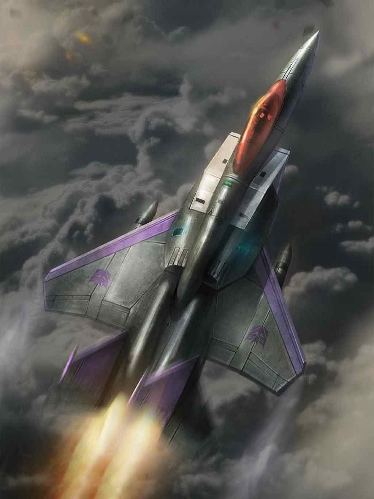 Skywarp is the sneakiest of all Decepticons. Enjoys playing cruel pranks on fellow Decepticons and appearing out of nowhere to attack Autobots. Not too smart. Would be useless without Megatron's supervision. Top speed of 1500 mph. Can instantly teleport up to 2.5 miles. Carries heat-seeking missiles and variable-calibre machine guns.