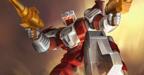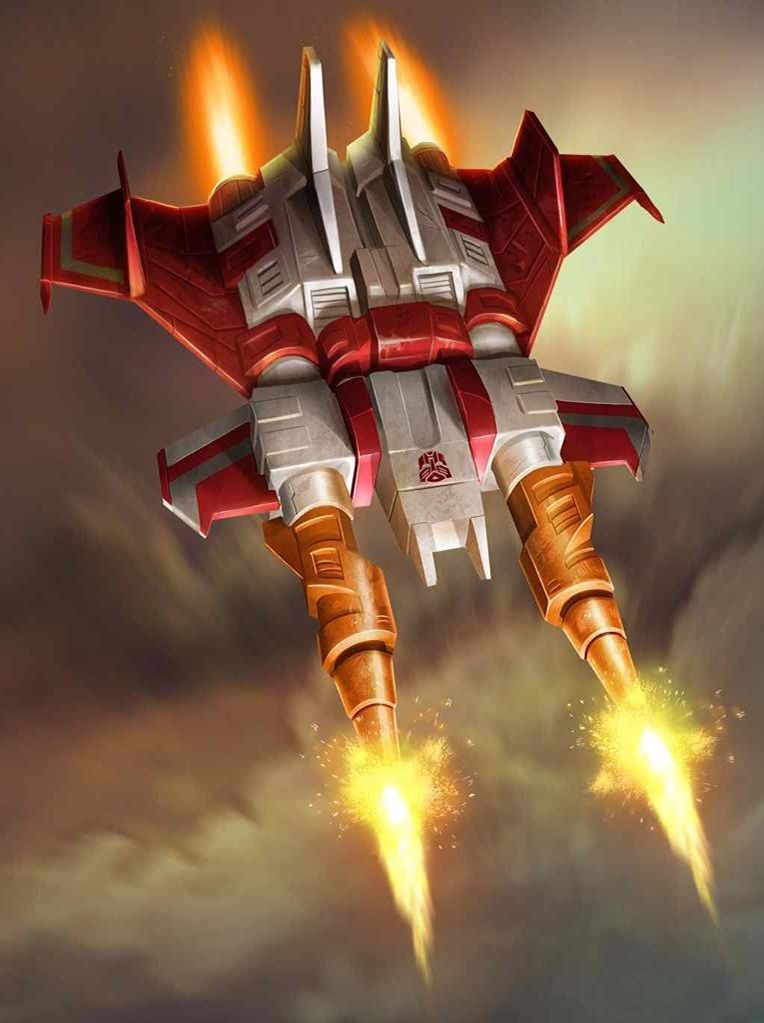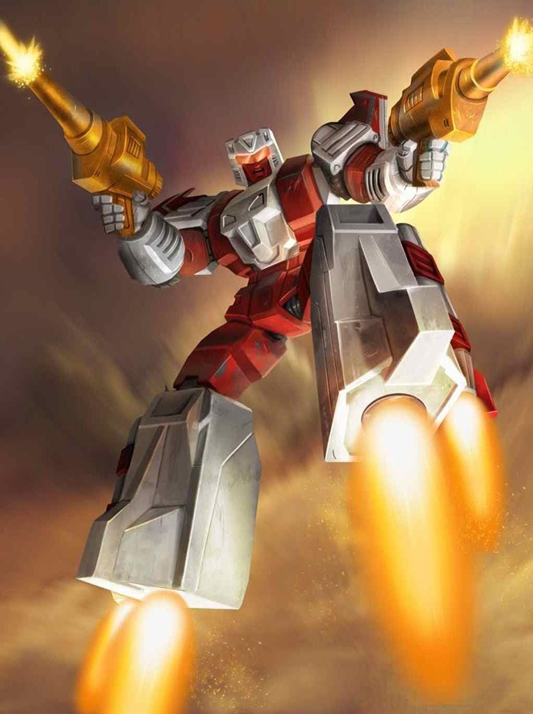He never looks at his targets before he shoots since he never aims - he just sprays artillery in all directions as soon as he arrives. High-strung, unnerved by quiet, expert marksmen. Lightning fast reflexes. In vehicle mode, maximum ground speed: 250 mph; maximum air speed: 580 mph. Carries twin automatic light-pulse blasters. In robot mode, uses heat-ray rifle. Combines with fellow Technobots to form [Computron].
