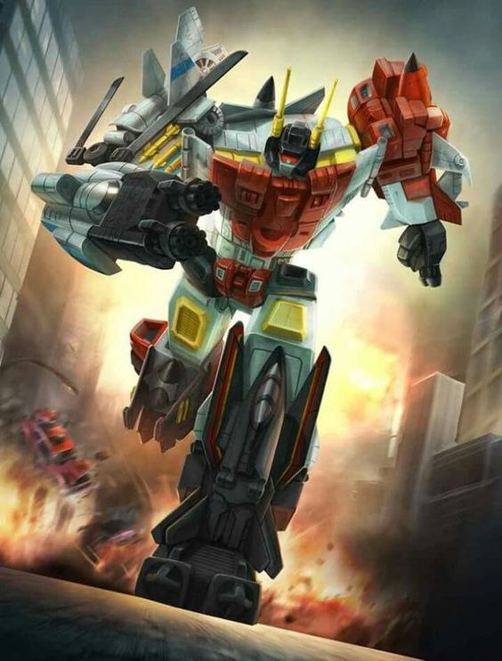 A fierce and frightful fighting machine. Suppresses thoughts of the five Aerialbots that comprise him, directs his thinking to one purpose: destruction of the Decepticons. Cold, aloof. Flies at 800 mph, range 5800 miles. Can demolish a battleship with one blow. Uses electrostatic discharger rifle. Difficult for him to adapt to new situations or be innovative due to limited mental functions.
