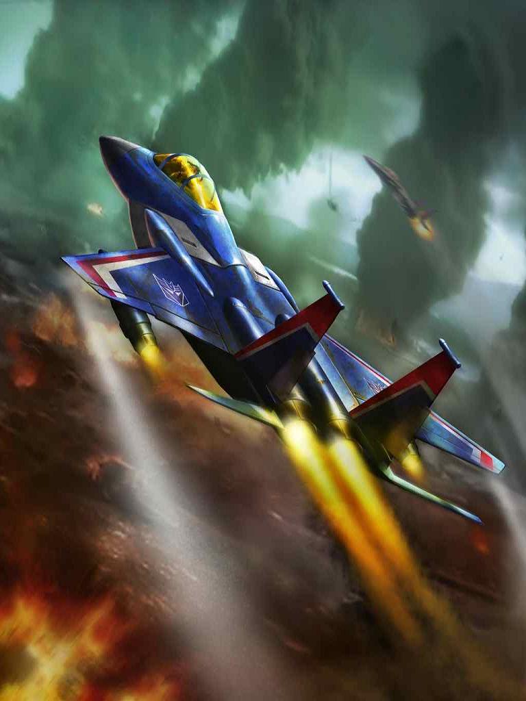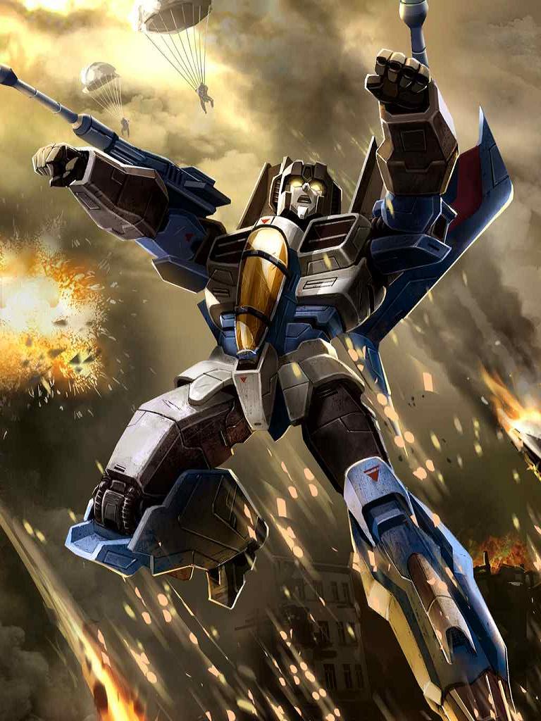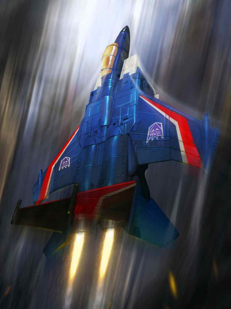 Thundercracker is contemptuous of anything that cannot fly. Not totally convinced of the Decepticons' cause, but they've persuaded him to continue battling the Autobots. Flies as speeds up to 1500 mph. Produces controlled, deafening sonic booms - can be heard for 200 miles. Equipped with powerful drone rockets and incendiary guns. Doubts about his cause sometimes impedes his effectiveness.