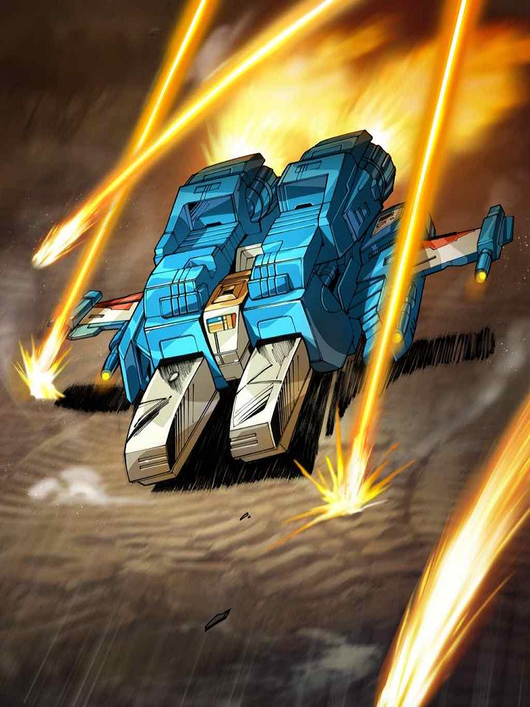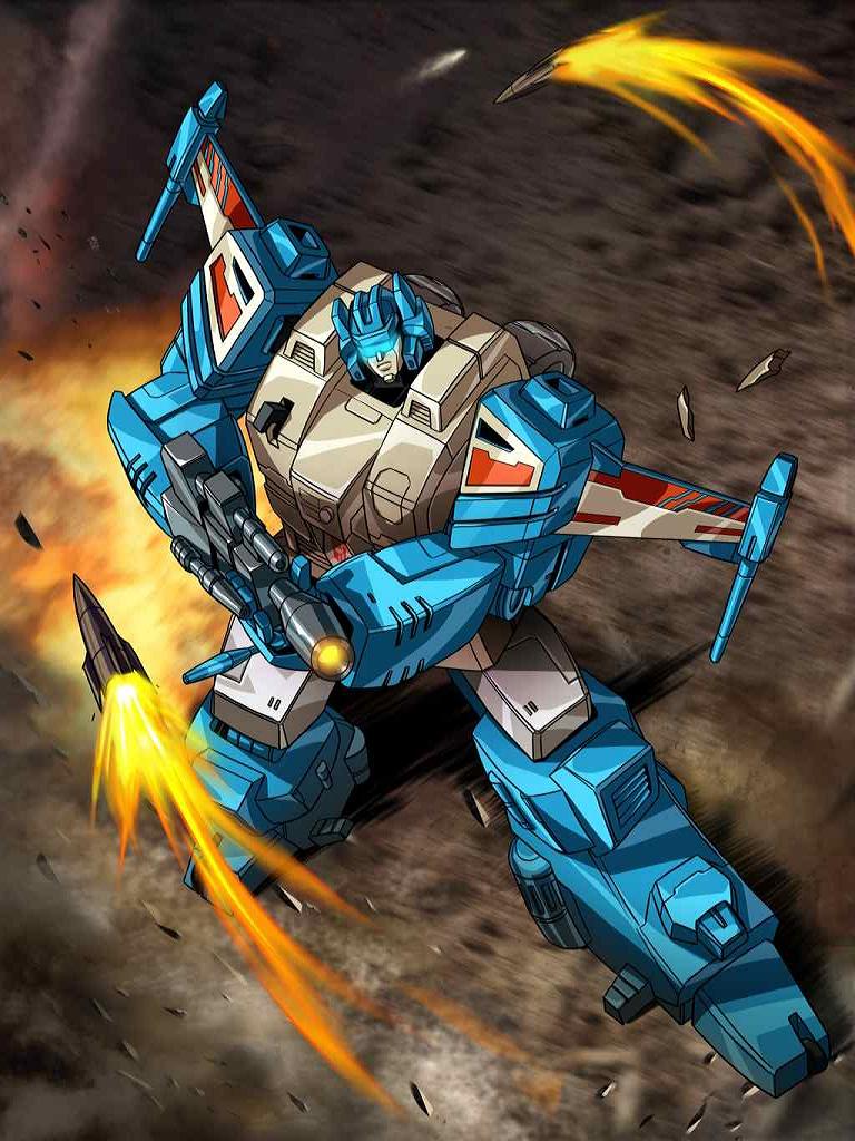 No mountain high enough, no river wide enough to stop this one robot wrecking crew. Has superior mobility due to his Cybertronic vehicular form. Views conquest of rough terrain as much a victory as beating Decepticons. Uses two rear jet engines to go 300 mph ... goes 80 mph on water with two front pontoons ... has two hi-voltage electric cannons and two hand lasers built-in ... carries a powerful twin ion impulse blaster.
