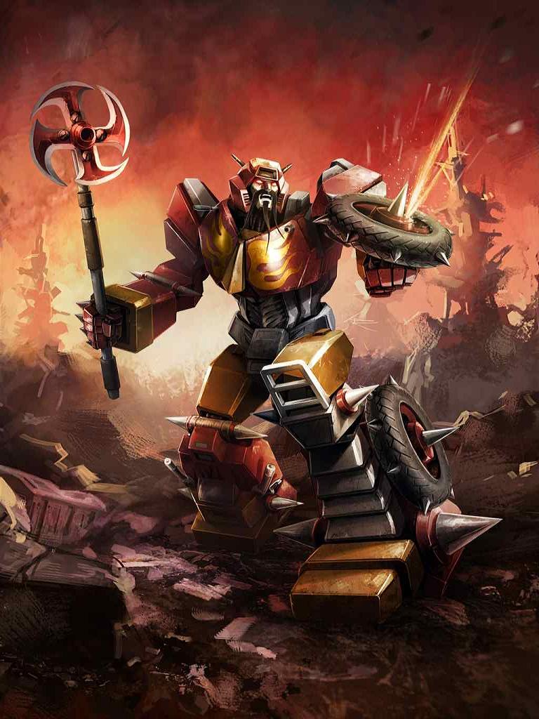 Wreck-Gar leads the Junkions, a race of junk robots. He's made of rusted scraps, chassis bits, manifold parts and dented odds and ends. A little scatterbrained, he speaks in odd-rhyming, pieced-together sentences. His words are a junkyard collection of broadcast fragments from T.V. commercials and radio jingles. In robot mode, he carries an armour axe and a decelerator laser that inhibits an enemy robot's flow of cerebral impulses.